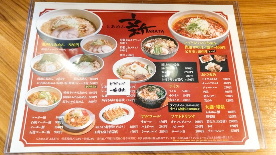 ちなみにもう一つの人気メニュー「石焼ビビンバ」は現在お休み中です。